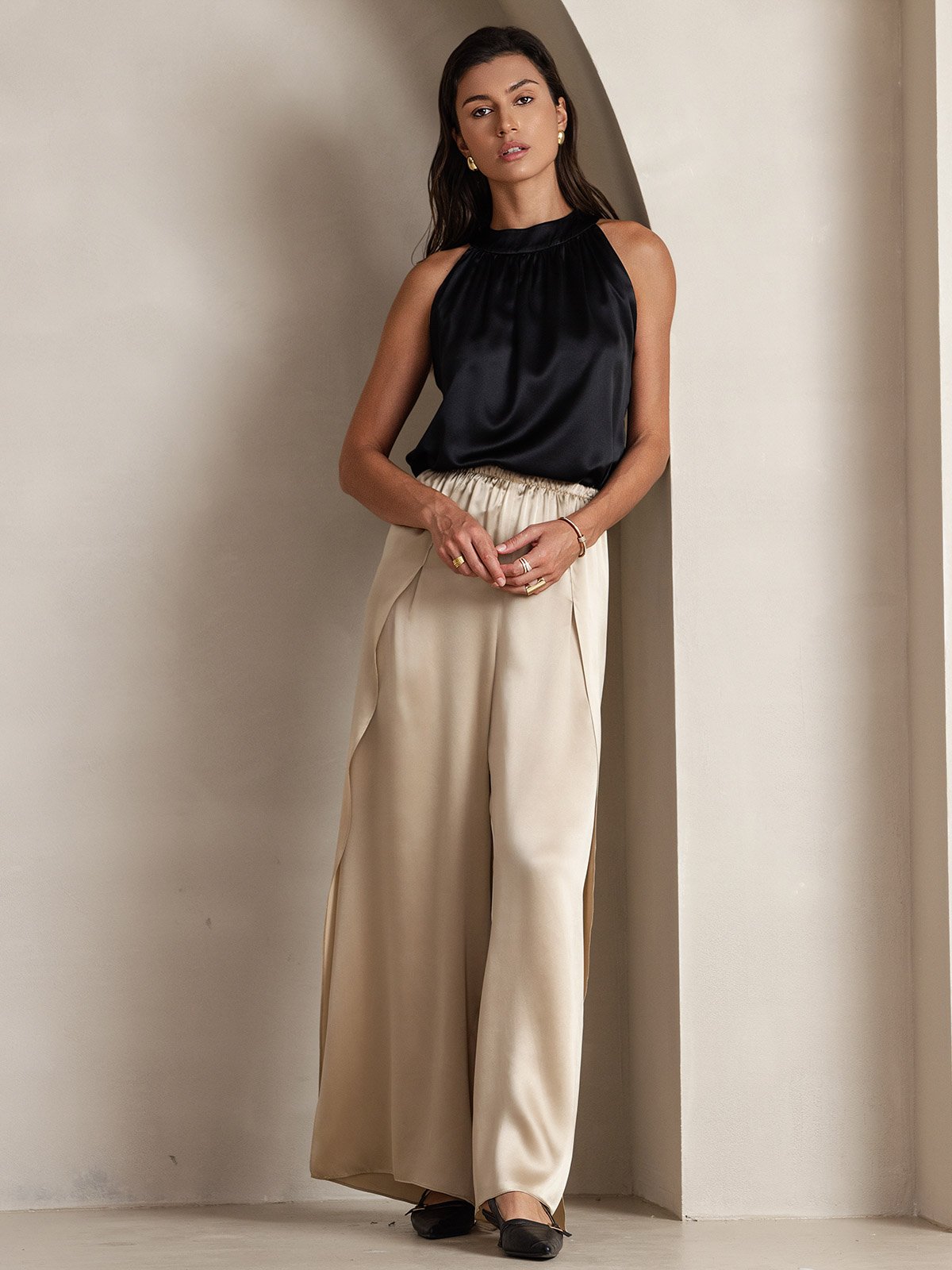 Bought this top on a whim, and honestly, I wasn’t expecting much. But the moment it touched my skin, I could feel the luxurious weight of 19Momme silk. Wore it to a rooftop dinner and got so many compliments. Planning to grab another color soon!